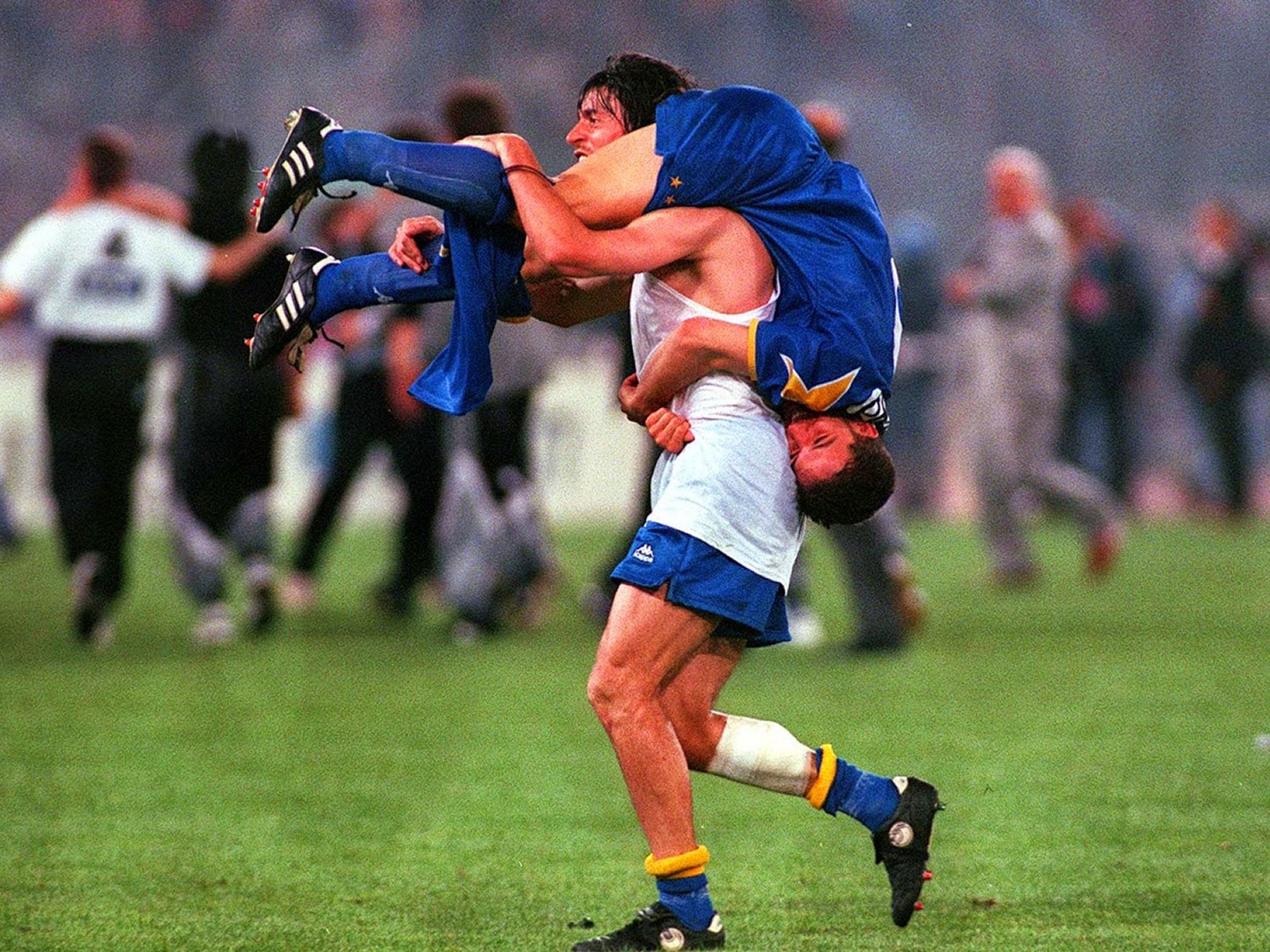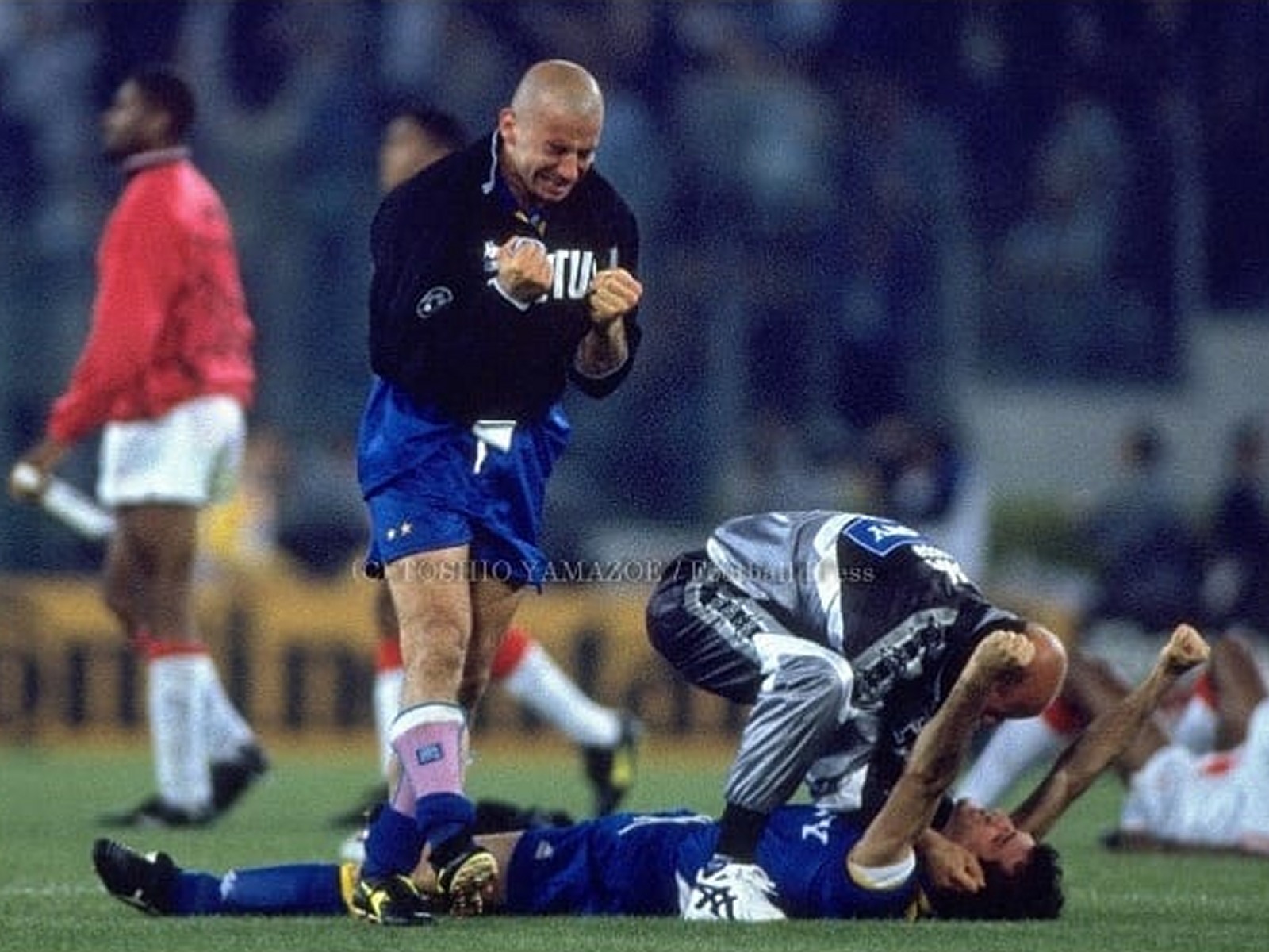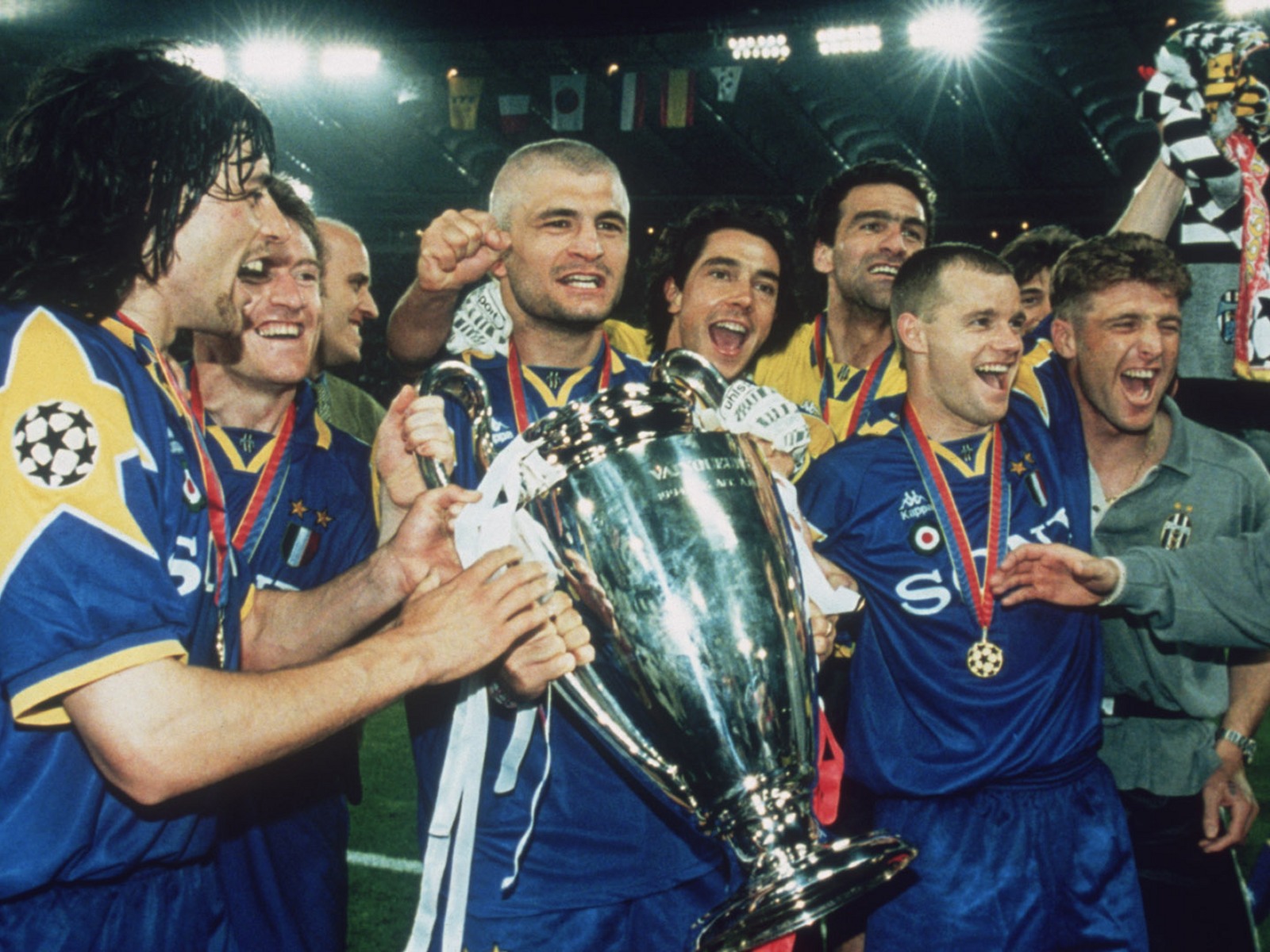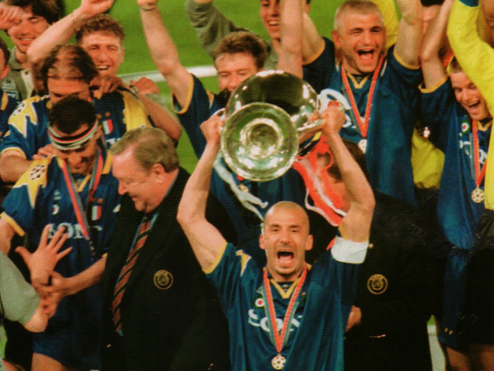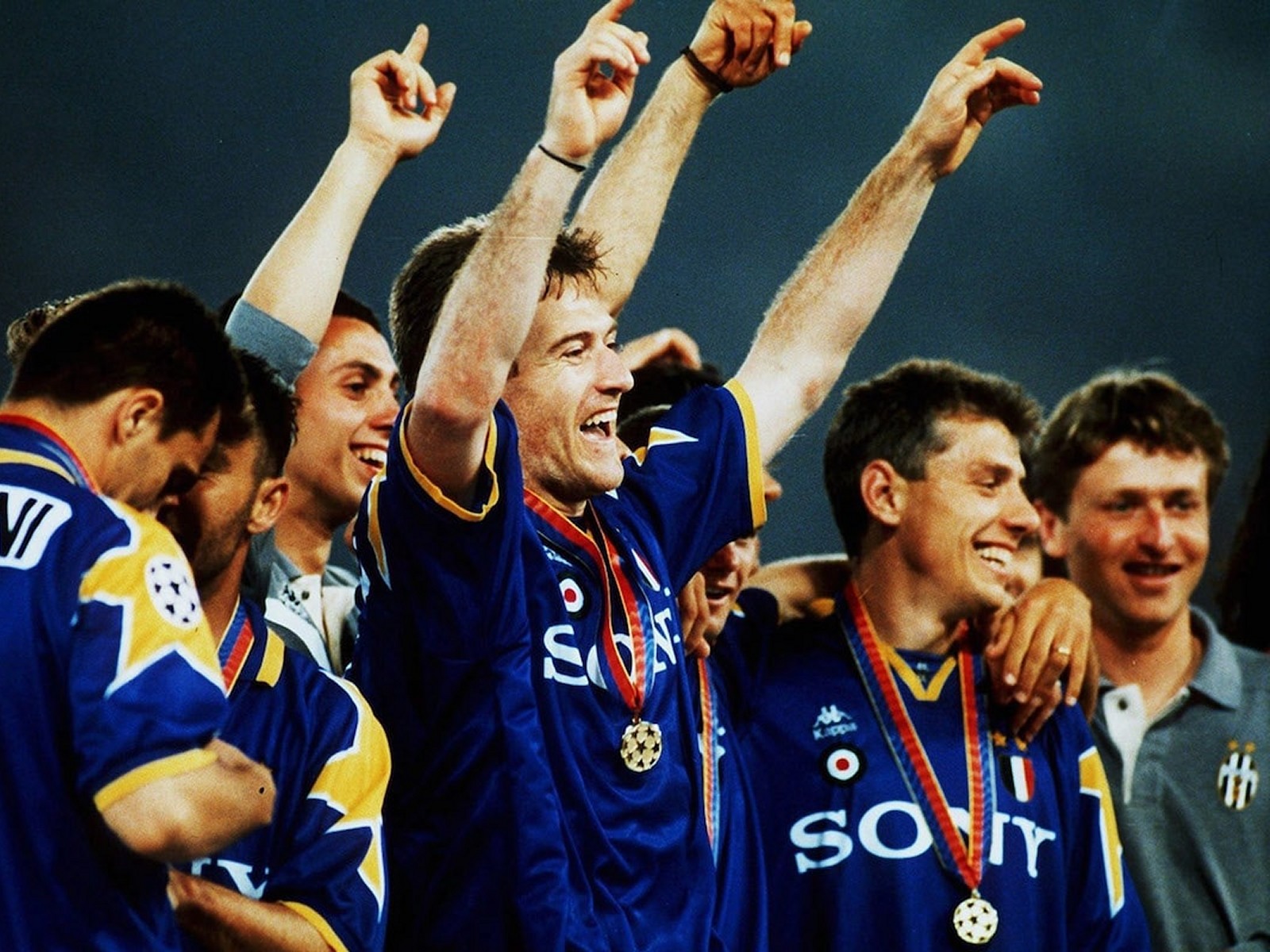 Marcello Lippi porta per la prima volta la Juventus in Champions League con un gruppo solido e talentuoso. L’obiettivo è quello di farsi valere, ma i pronostici non favoriscono i bianconeri che affrontano nella fase a gironi il Borussia Dortmund, lo Steaua Bucarest e i Rangers Glasgow. Avversarie superate di slancio con una serie di gol di Alex Del Piero che battezza qui il gol che porta il suo nome. Nei Quarti la Juventus si trova di fronte il temutissimo Real Madrid. Al Santiago Bernabeu alla Juve tremano le gambe. Altra musica al Delle Alpi dove Del Piero e Padovano stendono i blancos. In semifinale i bianconeri superano facilmente lo scoglio Nantes, squadra rivelazione del torneo, e arrivano in finale allo Stadio Olimpico di Roma contro l’Ajax, campione in carica. Ravanelli porta in vantaggio i bianconeri, ma Litmanen pareggia il conto. I tempi supplementari non cambiano il risultato e si va ai calci di rigore. Peruzzi ne para due, Jugovic segna quello decisivo. La Juventus è campione d’Europa.