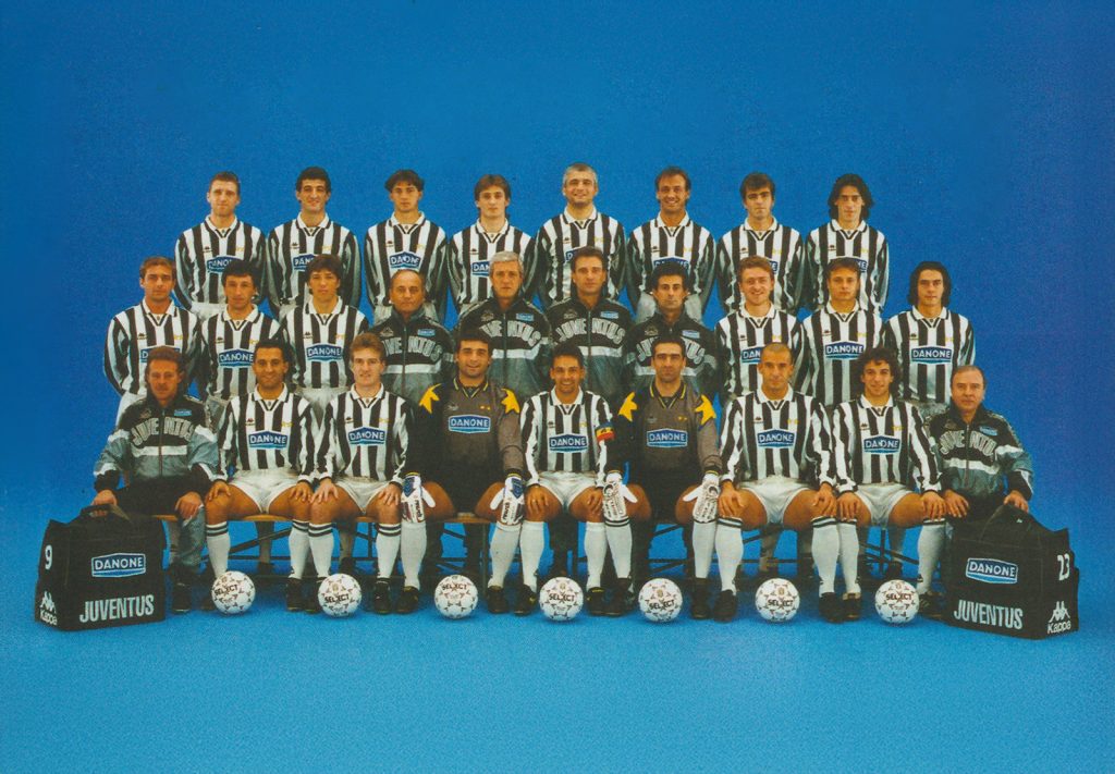 Ennesima rivoluzione in casa Juve in pochi anni. In mano al Dottor Umberto Agnelli la Vecchia Signora fa un corposo lifting e si affida alla cosiddetta (non sempre simpaticamente) “Triade” del Direttore sportivo Luciano Moggi, dell’AD Antonio Giraudo e del Vicepresidente Roberto Bettega. In panchina arriva l’emergente Marcello Lippi, reduce dalla positiva esperienza al Napoli. Profondamente rinnovata la rosa, con gli innesti a centrocampo del portoghese Paulo Sousa, del francese Deschamps e del promettente Alessio Tacchinardi. In difesa Lippi porta il collaudato Ciro Ferrara, mentre davanti si insiste sul terzetto Baggio-Vialli-Ravanelli, con l’ingresso in pianta stabile del talentino veneto Alex Del Piero. Dopo un rodaggio iniziale la Juve cade rovinosamente a Foggia, ma risorge dalla giornata successiva in quel di Cremona e diventa un’armata invincibile. Decisiva la rinascita di Gianluca Vialli, spesso capitano a causa delle assenze di Roberto Baggio, e l’ottimo rendimento dei nuovi arrivati. La Juve conquista il suo 23° titolo e ha la meglio sul Parma, dopo un duello durato l’intera stagione e andato in scena anche in Coppa UEFA, persa nella doppia finale, e in Coppa Italia, vinta per la nona volta. Prima di celebrare i successi, tuttavia, gli uomini di Lippi piangono la scomparsa di Andrea Fortunato dopo una lunga e dolorosa malattia.